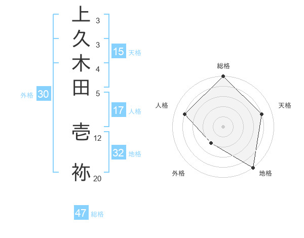 上久木田 壱袮さんを姓名の画数から五運を鑑定