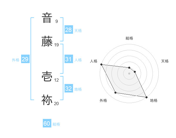 音藤 壱袮さんを姓名の画数から五運を鑑定