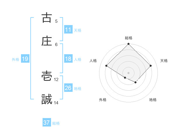 古庄 壱誠さんの総格は37画の5点!
