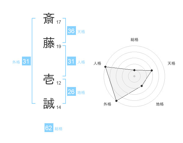 斎藤 壱誠さんの外格は31画の5点!