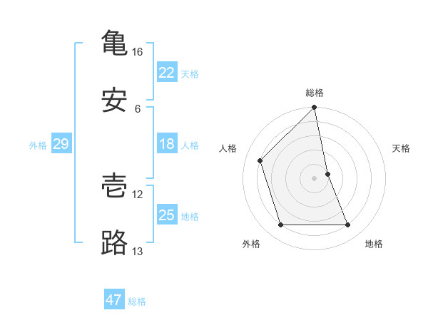 亀安 壱路さんを姓名の画数から五運を鑑定
