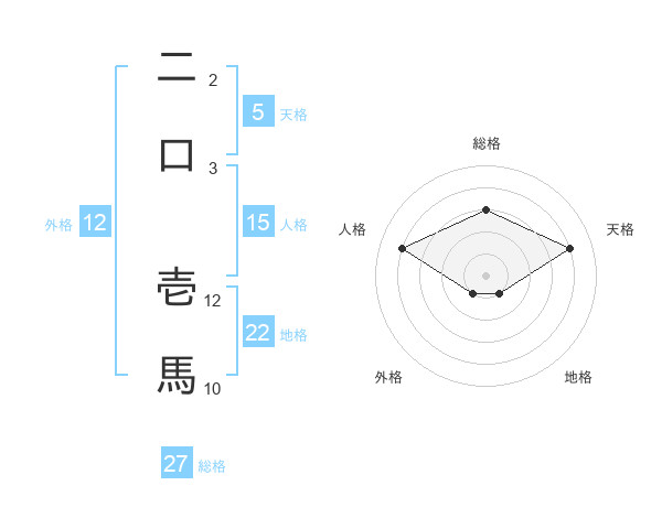 二口 壱馬さんの総格は27画の3点!