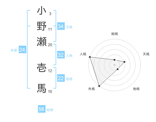 小野瀬 壱馬さんの総格は56画の1点!