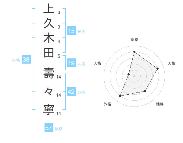 上久木田 壽々寧さんの総格は57画の4点!