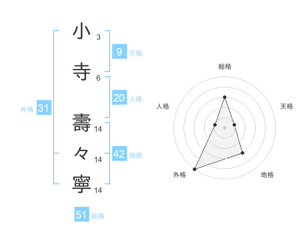 小寺 壽々寧さんの総格は51画の3点!