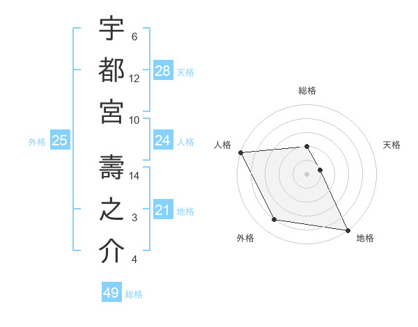 宇都宮 壽之介さんを姓名の画数から五運を鑑定