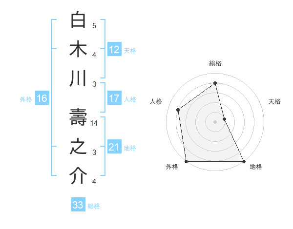 白木川 壽之介さんの総格は33画の4点!