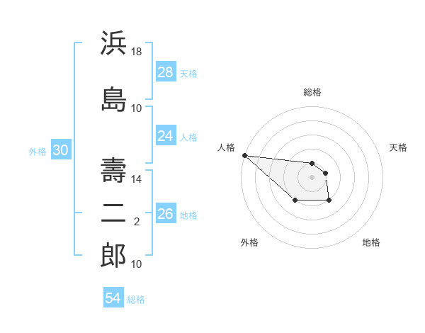 浜島 壽二郎さんを姓名の画数から五運を鑑定