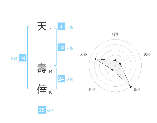 天 壽倖さんの総格は28画の1点!