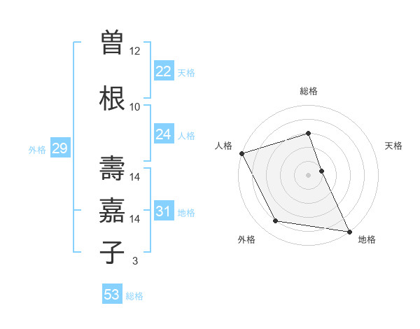 曽根 壽嘉子さんを姓名の画数から五運を鑑定