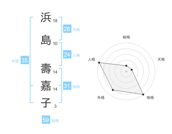 浜島 壽嘉子さんを姓名の画数から五運を鑑定