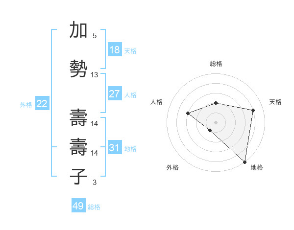 加勢 壽壽子さんの総格は49画の2点!