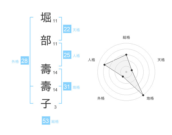 堀部 壽壽子さんを姓名の画数から五運を鑑定