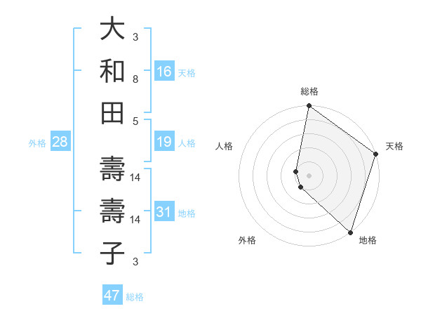 大和田 壽壽子さんの人格は19画の1点!