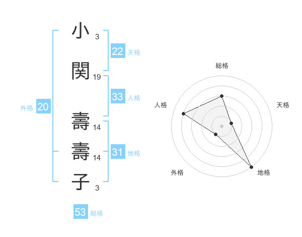 小関 壽壽子さんの総格は53画の3点