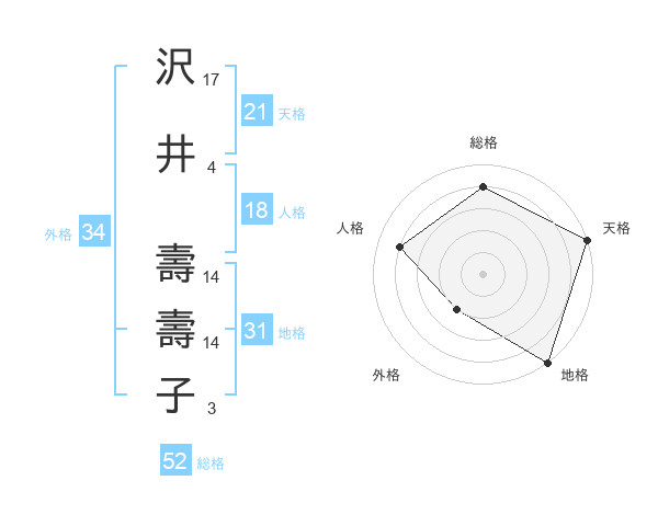 沢井 壽壽子さんの外格は34画の2点!