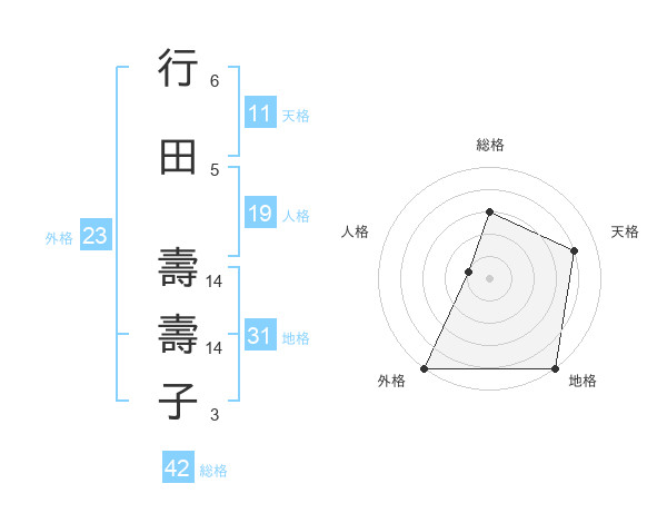 行田 壽壽子さんの総格は42画の3点!