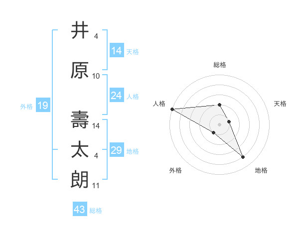 井原 壽太朗さんの総格は43画の2点!