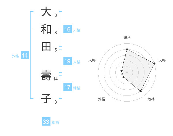 大和田 壽子さんを姓名の画数から五運を鑑定