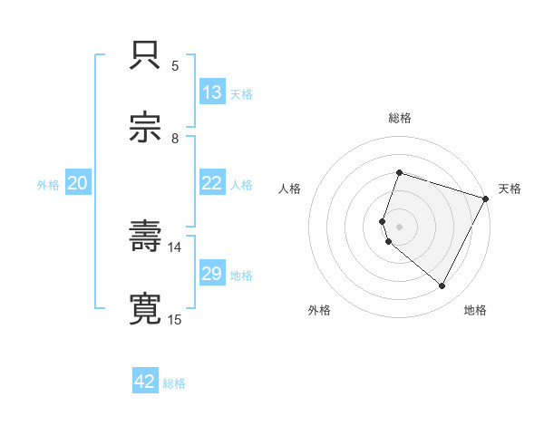 只宗 壽寛さんを姓名の画数から五運を鑑定