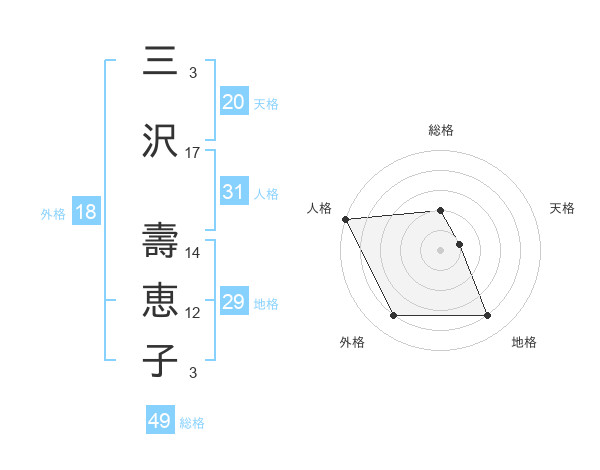 三沢 壽恵子さんを姓名の画数から五運を鑑定