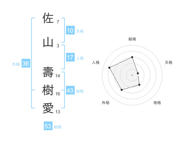佐山 壽樹愛さんを姓名の画数から五運を鑑定