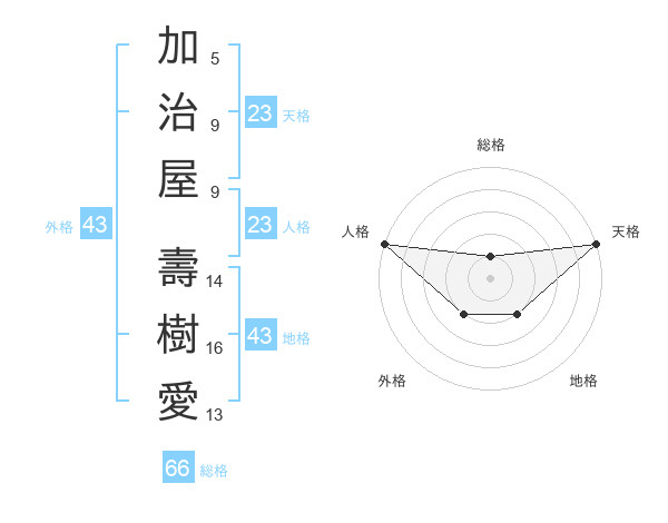 加治屋 壽樹愛さんを姓名の画数から五運を鑑定