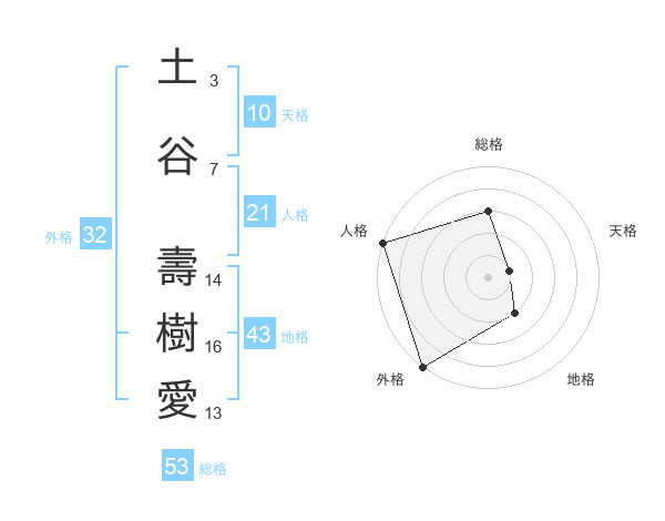 土谷 壽樹愛さんの総格は53画の3点!