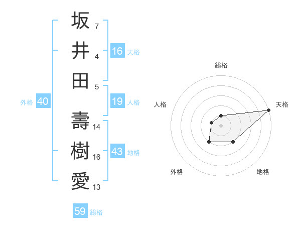 坂井田 壽樹愛さんを姓名の画数から五運を鑑定