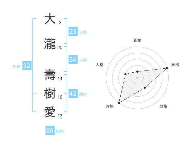 大瀧 壽樹愛さんの外格は32画の5点!