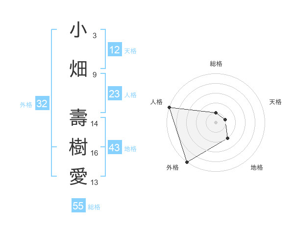 小畑 壽樹愛さんを姓名の画数から五運を鑑定