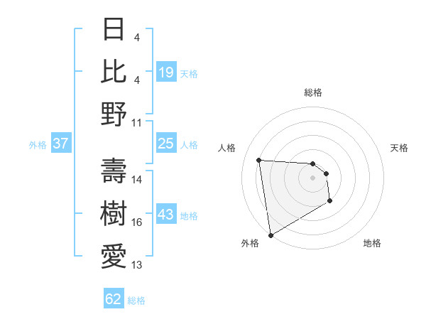 日比野 壽樹愛さんの外格は37画の5点!
