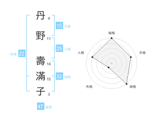 丹野 壽滿子さんの総格は47画の5点!