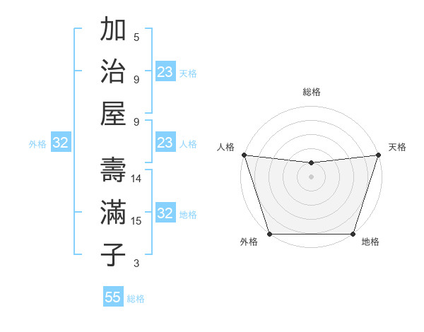 加治屋 壽滿子さんを姓名の画数から五運を鑑定