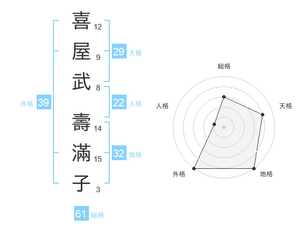喜屋武 壽滿子さんを姓名の画数から五運を鑑定