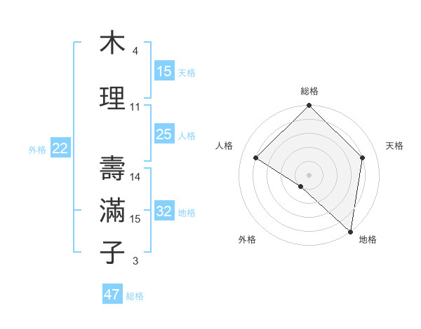 木理 壽滿子さんの総格は47画の5点!