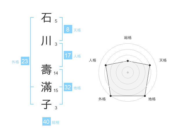 石川 壽滿子さんの外格は23画の5点!