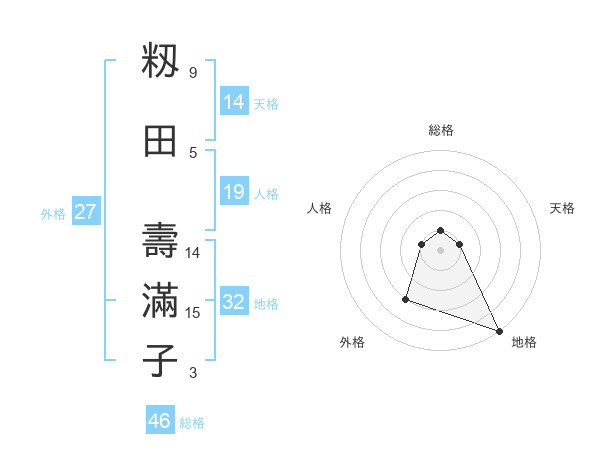 籾田 壽滿子さんの天格は14画の1点!