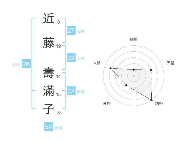 近藤 壽滿子さんを姓名の画数から五運を鑑定