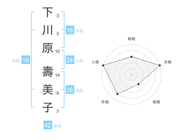 下川原 壽美子さんを姓名の画数から五運を鑑定