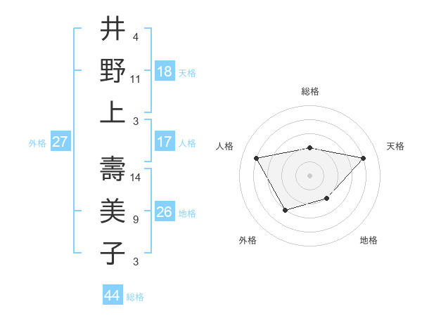 井野上 壽美子さんの総格は44画の2点