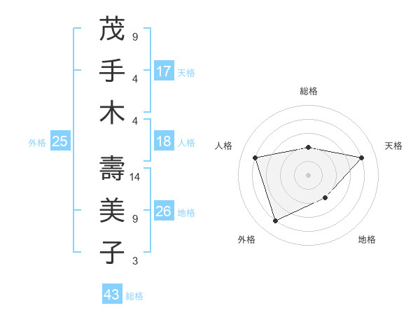 茂手木 壽美子さんを姓名の画数から五運を鑑定