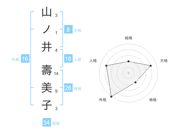 山ノ井 壽美子さんの総格は34画の2点!
