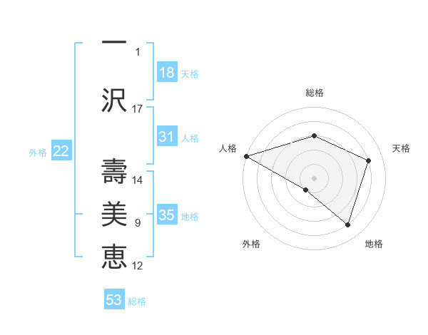 一沢 壽美恵さんを姓名の画数から五運を鑑定