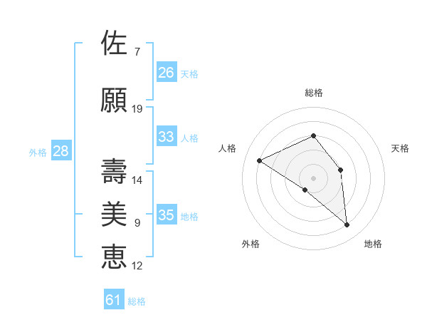 佐願 壽美恵さんを姓名の画数から五運を鑑定