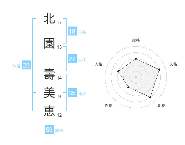 北園 壽美恵さんを姓名の画数から五運を鑑定