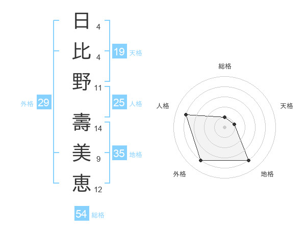 日比野 壽美恵さんを姓名の画数から五運を鑑定