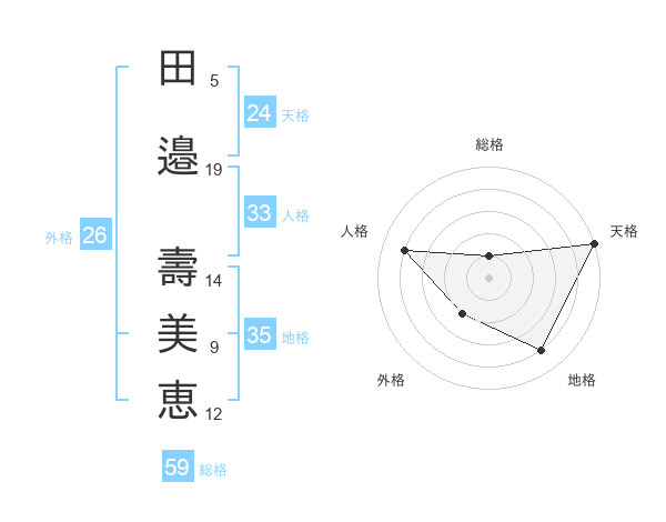 田邉 壽美恵さんを姓名の画数から五運を鑑定