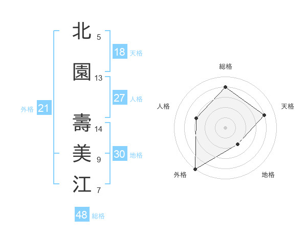 北園 壽美江さんを姓名の画数から五運を鑑定