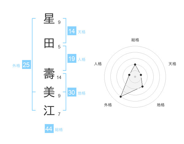 星田 壽美江さんの総格は44画の2点!